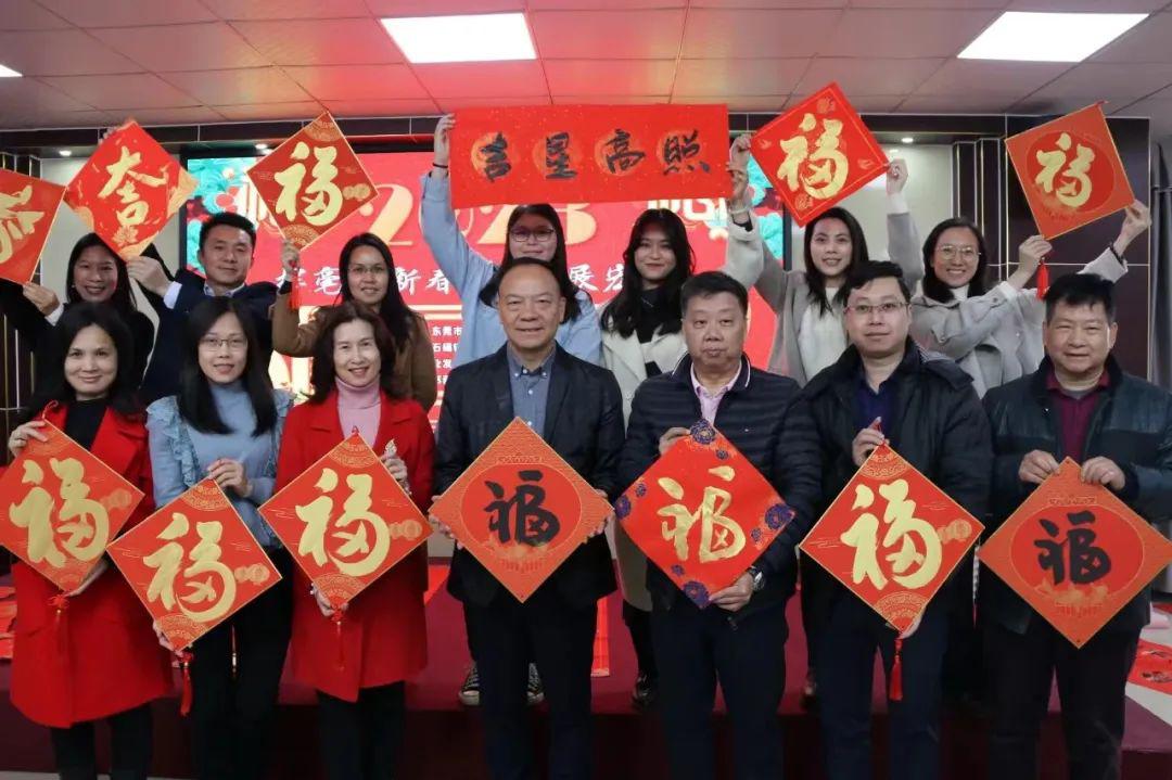 2023年东莞市工商联(总商会)在润丰农业发展集团举办迎春送福活动(石碣站),东莞市工商联黄志良副主席、会员部叶注波部长、石碣镇钟文伟党委、统战办何建华副主任、东莞市工商联(总商会)副主席、石碣工商联翟志坚主席;莞城街道四级高级主办莞城工商联(商会)常务副主席黄基球;万江工商联陈志新常务副主席;以及石碣、高埗、莞城、南城、万江几个镇(街)工商联(商会)企业家代表、秘书处,润丰集团加工企业等近60人共同喜迎兔年到来!
