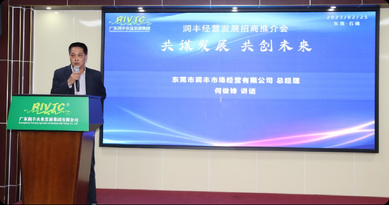 会上,润丰市场经营有限公司总经理何俊锋对市场的现状进行了详细的说明,润丰集团发展顾问蔡毅雄就市场的硬件提升、未来的规划与布局、市场发展的空间、促进商户业务拓展的优惠举措、润丰集团的发展目标和前景进行了深入的解读。